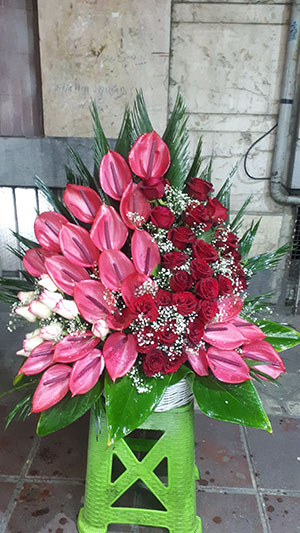 با گلهای انتریوم و رز هلندی و گلهای مینیاتوری